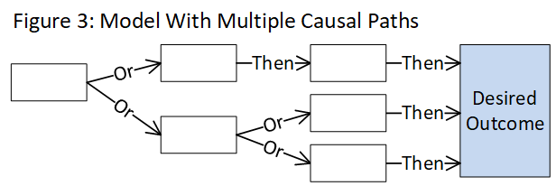 - Each time the model runs, i.e. each time the program is implemented, there are three possible paths to success that may be traveled.